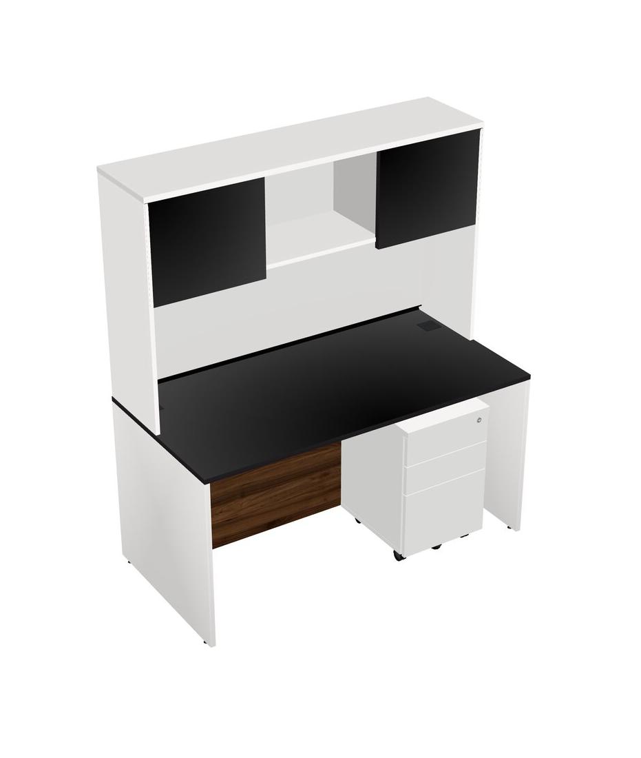 Black Rectangular Office Desk Plus White Wooden Mobile Drawers And White Hutch