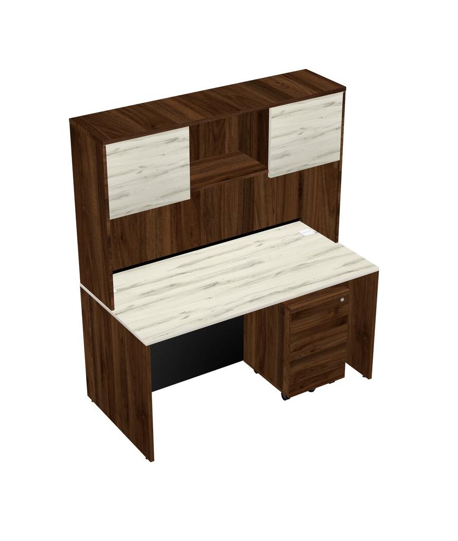 Heinne Holz Rectangular Office Desk Plus Columbia Walnut Wooden Mobile Drawers And Columbia Walnut Hutch