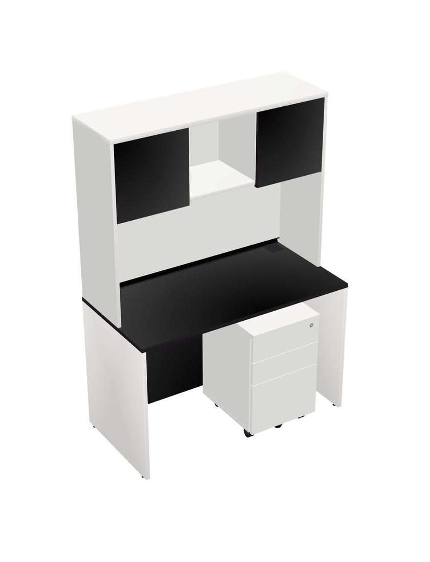 Black Rectangular Office Desk Plus White Wooden Mobile Drawers And White Hutch