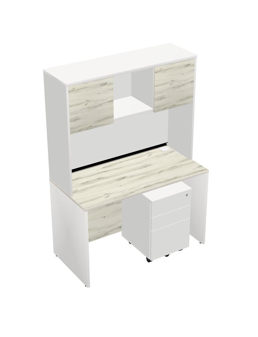 Heinne Holz Rectangular Office Desk Plus White Wooden Mobile Drawers And White Hutch