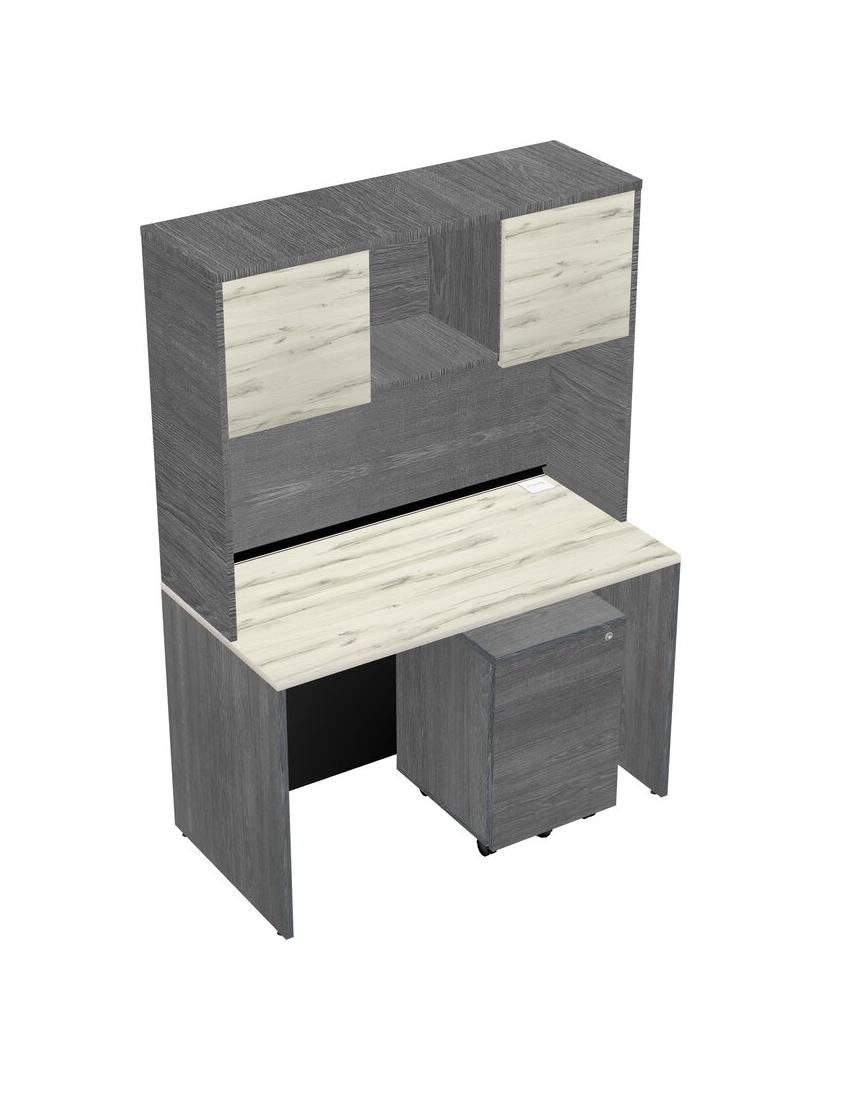 Heinne Holz Rectangular Office Desk Plus Grey Wooden Mobile Drawers And Grey Hutch