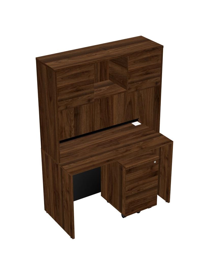 Columbia Walnut Rectangular Office Desk Plus Columbia Walnut Wooden Mobile Drawers And Columbia Walnut Hutch