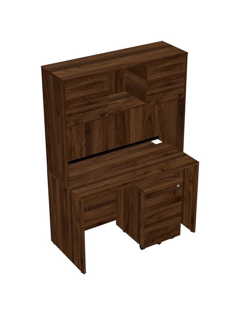 Columbia Walnut Rectangular Office Desk Plus Columbia Walnut Wooden Mobile Drawers And Columbia Walnut Hutch