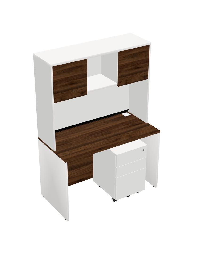 Columbia Walnut Rectangular Office Desk Plus White Wooden Mobile Drawers And White Hutch