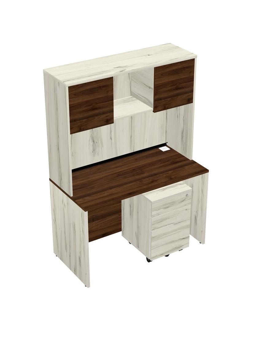 Columbia Walnut Rectangular Office Desk Plus Heinne Holz Wooden Mobile Drawers And Heinne Holz Hutch