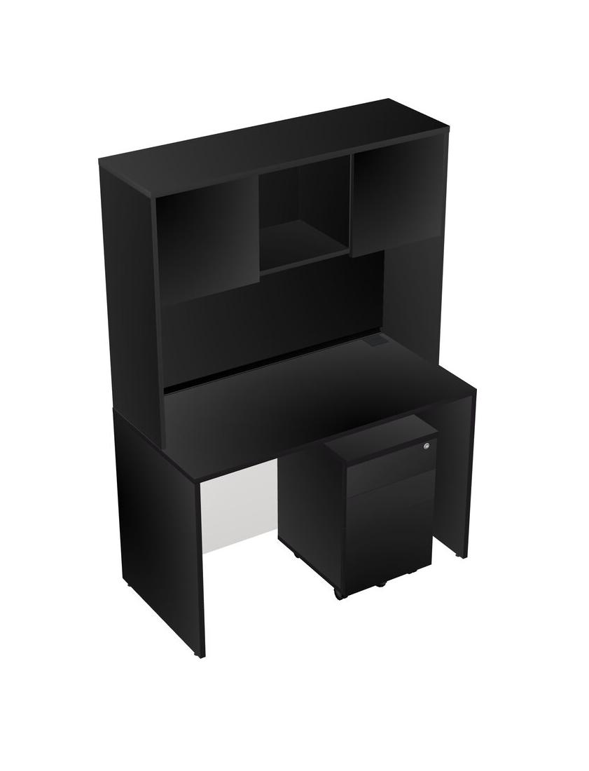 Black Rectangular Office Desk Plus Black Wooden Mobile Drawers And Black Hutch