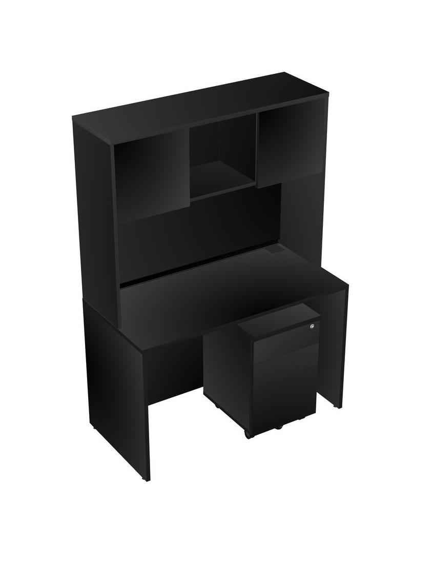 Black Rectangular Office Desk Plus Black Wooden Mobile Drawers And Black Hutch