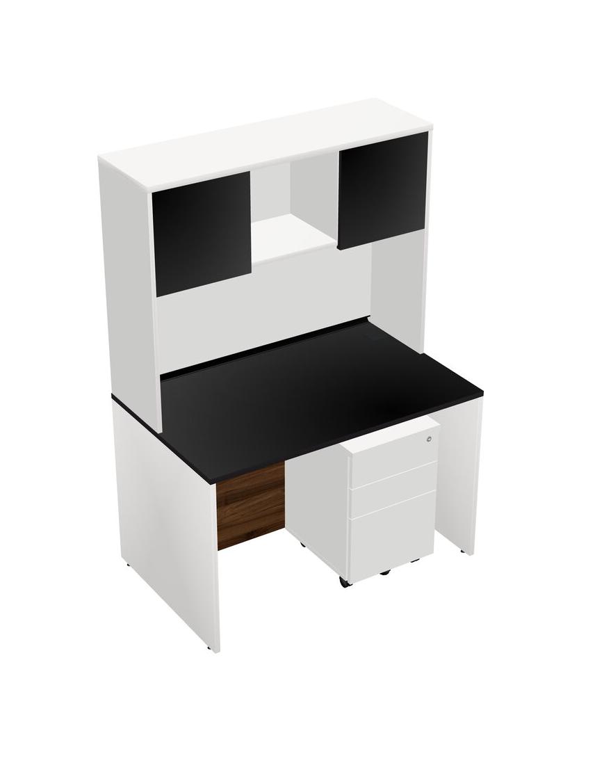 Black Rectangular Office Desk Plus White Wooden Mobile Drawers And White Hutch