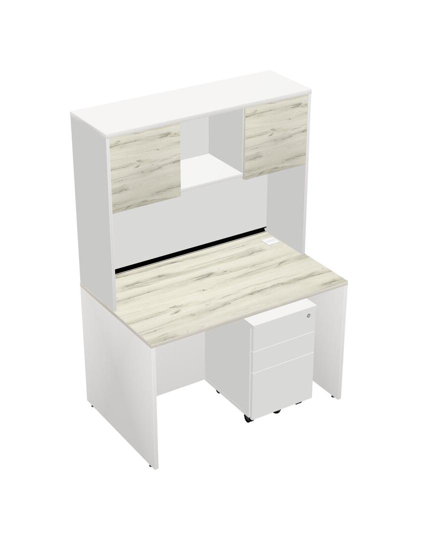 Heinne Holz Rectangular Office Desk Plus White Wooden Mobile Drawers And White Hutch