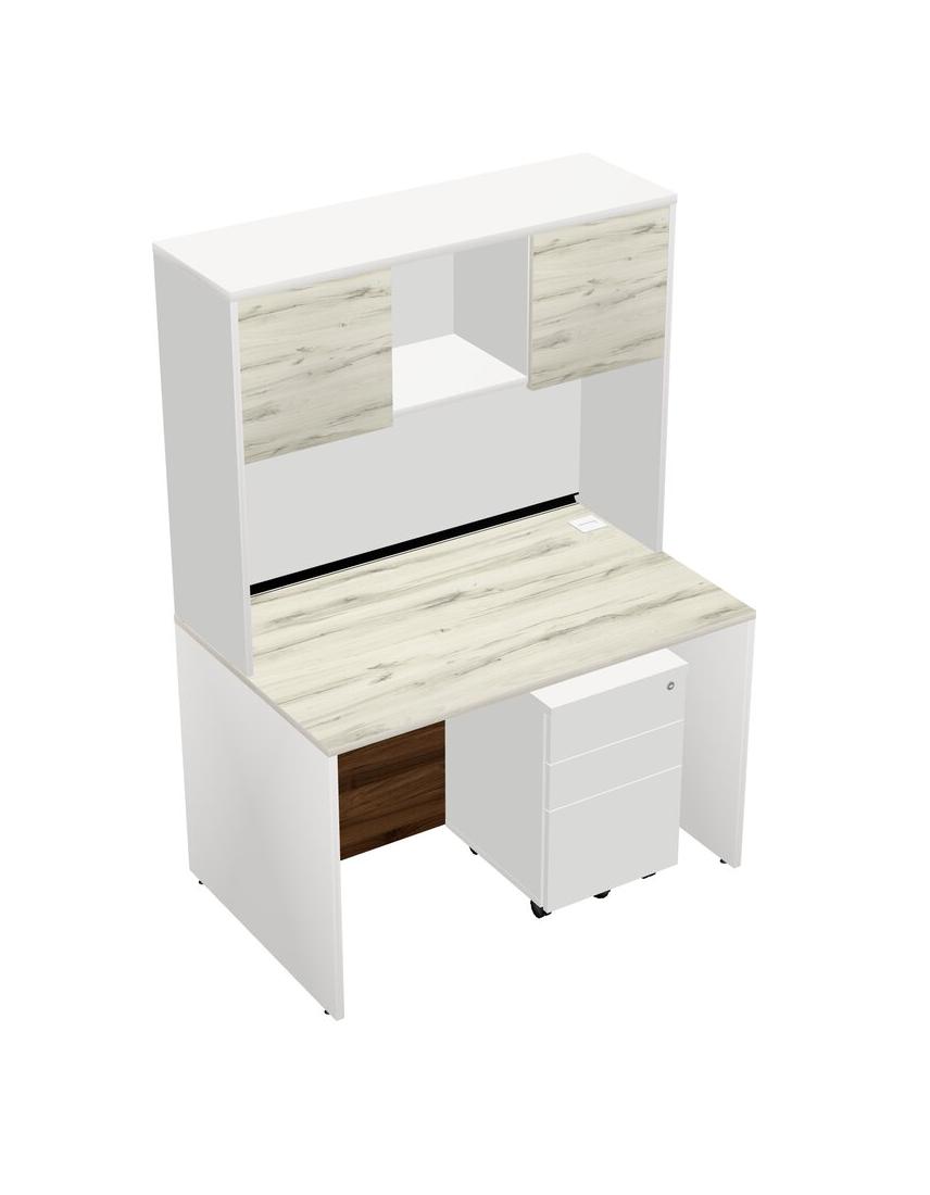 Heinne Holz Rectangular Office Desk Plus White Wooden Mobile Drawers And White Hutch