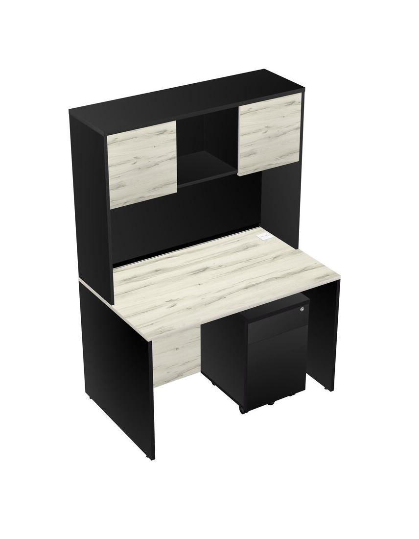 Heinne Holz Rectangular Office Desk Plus Black Wooden Mobile Drawers And Black Hutch
