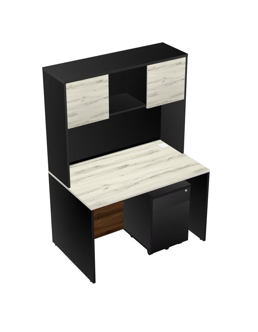 Heinne Holz Rectangular Office Desk Plus Black Wooden Mobile Drawers And Black Hutch