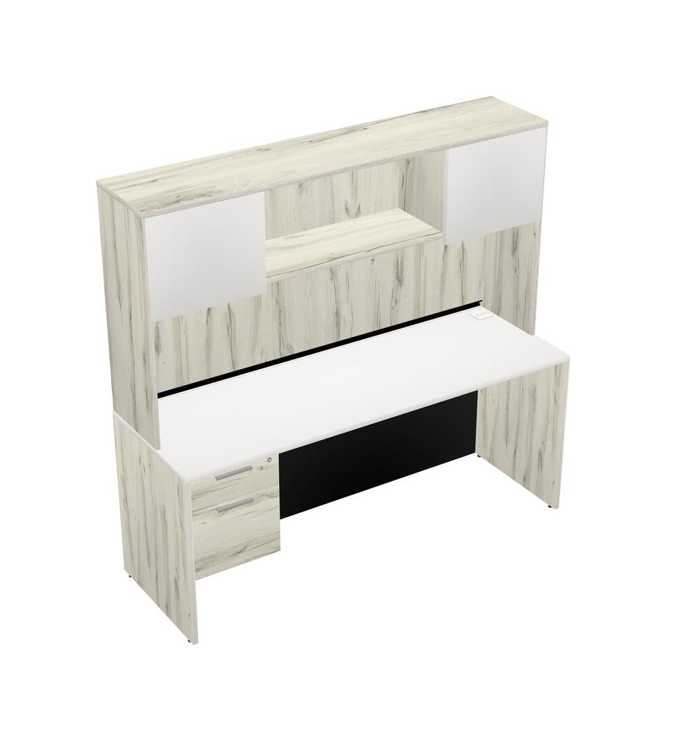 White Rectangular Office Desk Plus Heinne Holz Hanging Drawers And Heinne Holz Hutch