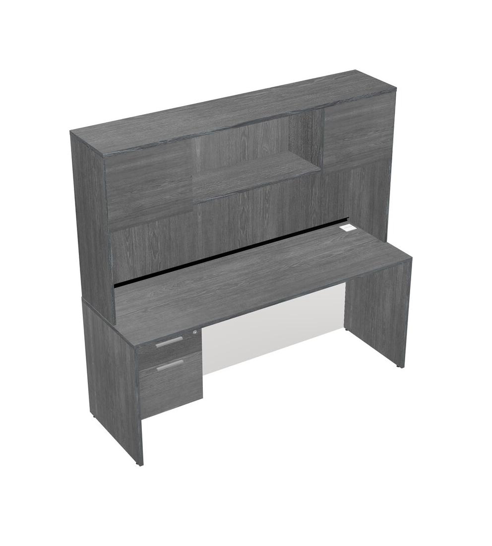 Grey Rectangular Office Desk Plus Grey Hanging Drawers And Grey Hutch