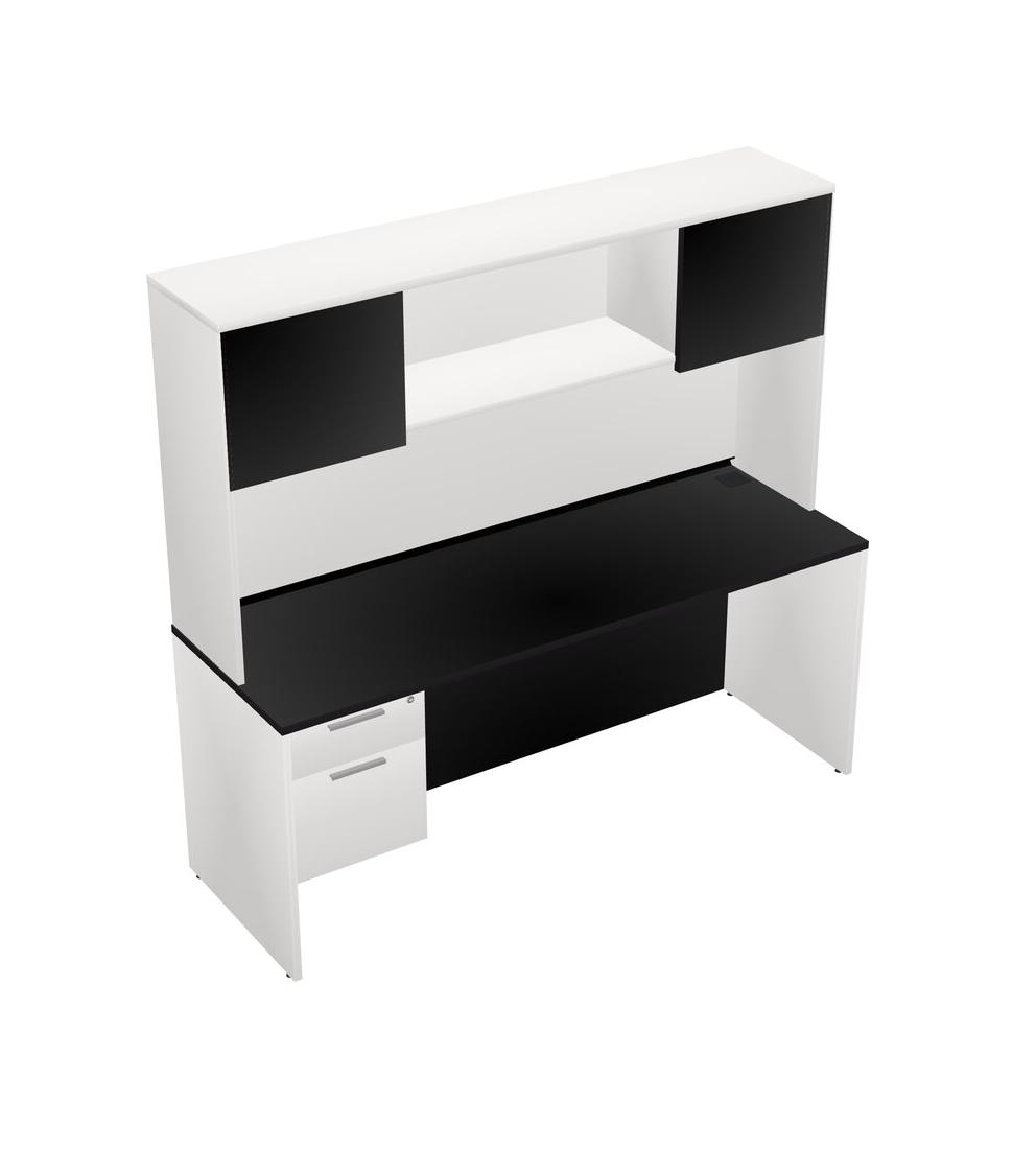 Black Rectangular Office Desk Plus White Hanging Drawers And White Hutch