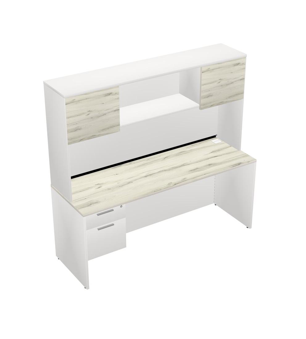 Heinne Holz Rectangular Office Desk Plus White Hanging Drawers And White Hutch