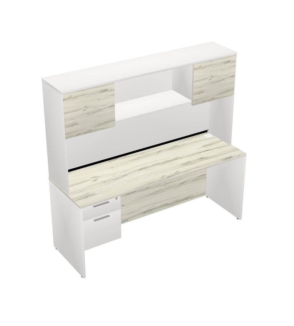 Heinne Holz Rectangular Office Desk Plus White Hanging Drawers And White Hutch