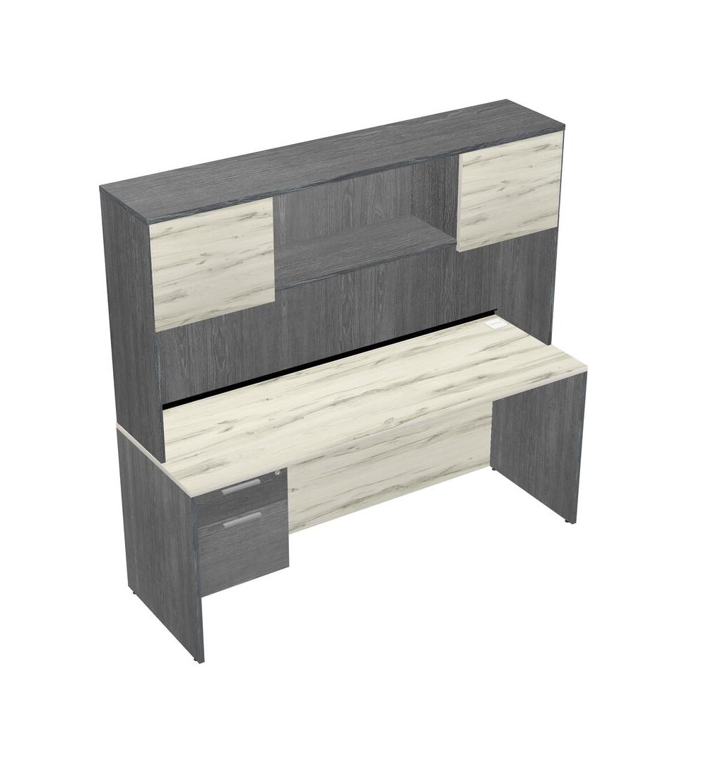 Heinne Holz Rectangular Office Desk Plus Grey Hanging Drawers And Grey Hutch