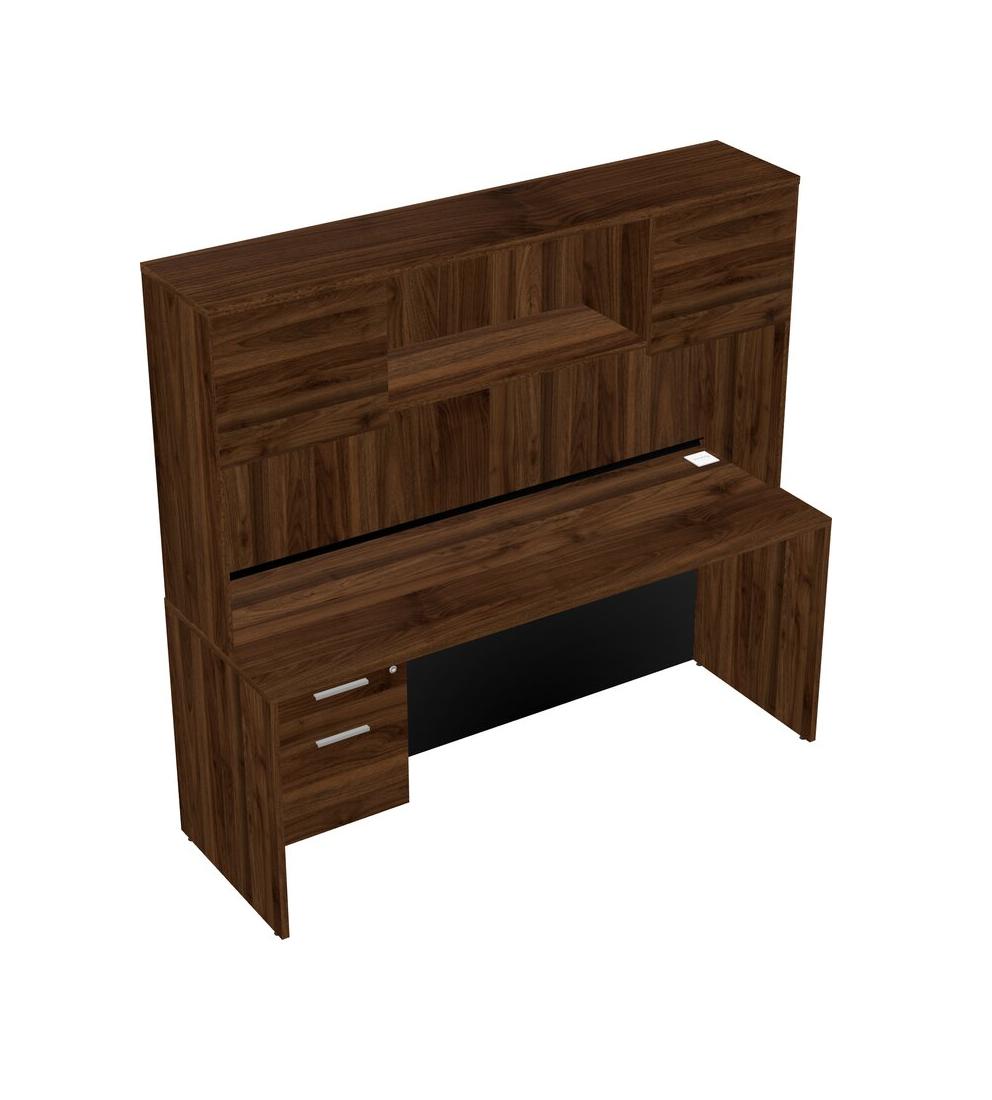 Columbia Walnut Rectangular Office Desk Plus Columbia Walnut Hanging Drawers And Columbia Walnut Hutch
