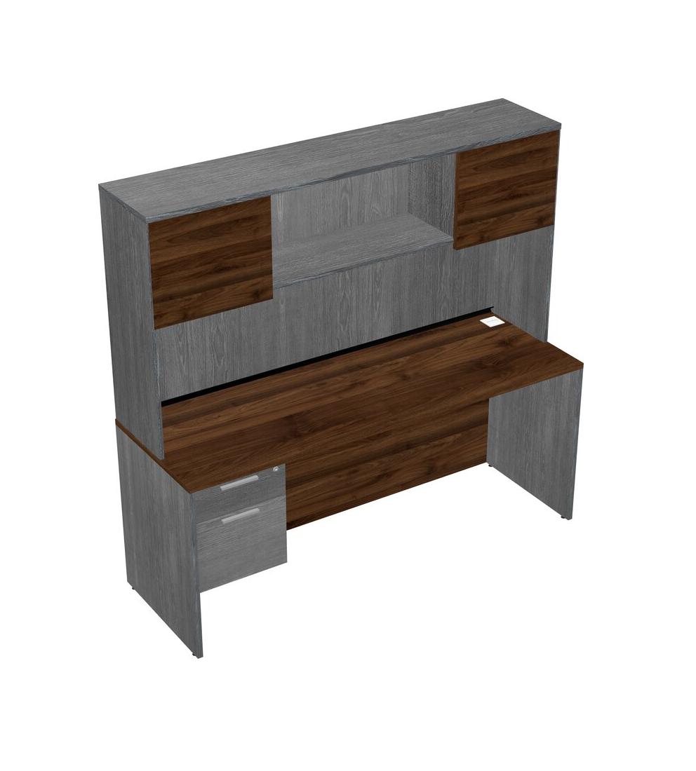 Columbia Walnut Rectangular Office Desk Plus Grey Hanging Drawers And Grey Hutch