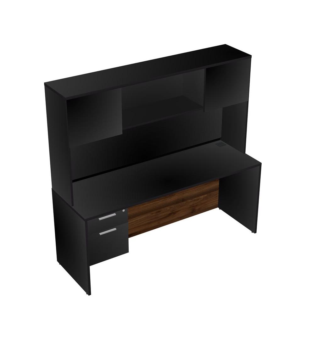 Black Rectangular Office Desk Plus Black Hanging Drawers And Black Hutch