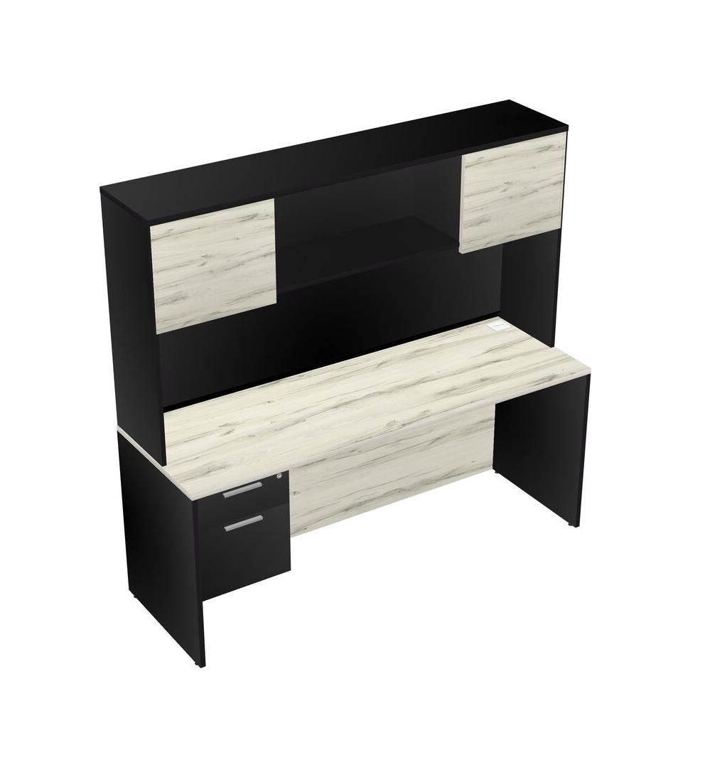 Heinne Holz Rectangular Office Desk Plus Black Hanging Drawers And Black Hutch