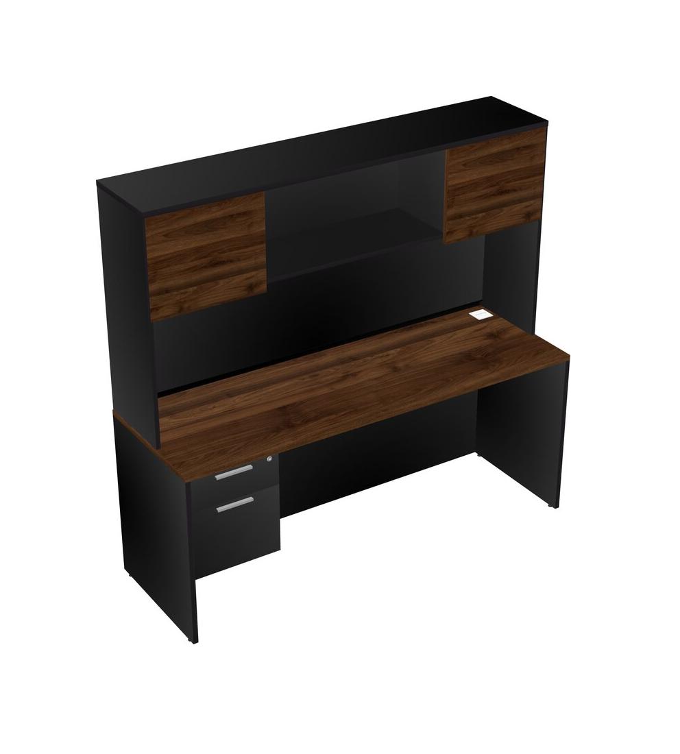 Columbia Walnut Rectangular Office Desk Plus Black Hanging Drawers And Black Hutch