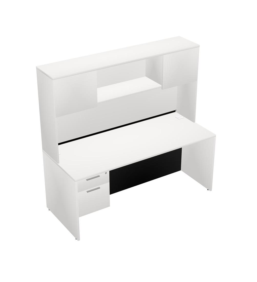 White Rectangular Office Desk Plus White Hanging Drawers And White Hutch