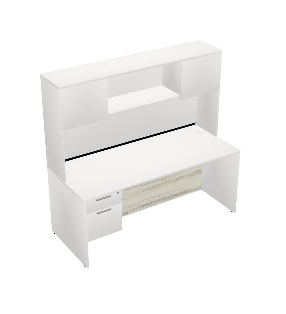 White Rectangular Office Desk Plus White Hanging Drawers And White Hutch