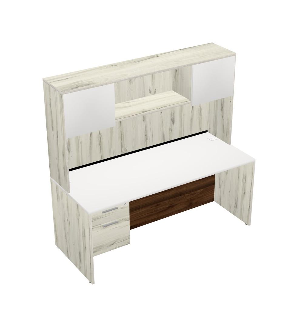 White Rectangular Office Desk Plus Heinne Holz Hanging Drawers And Heinne Holz Hutch