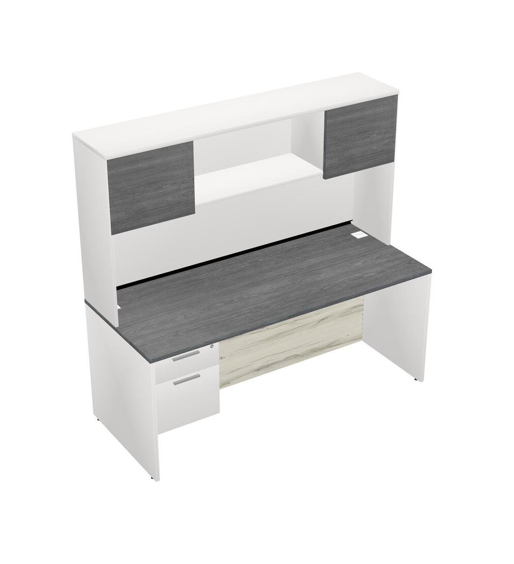Grey Rectangular Office Desk Plus White Hanging Drawers And White Hutch