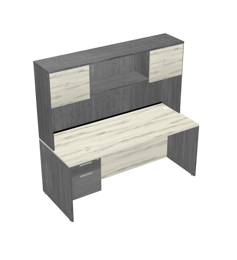 Heinne Holz Rectangular Office Desk Plus Grey Hanging Drawers And Grey Hutch