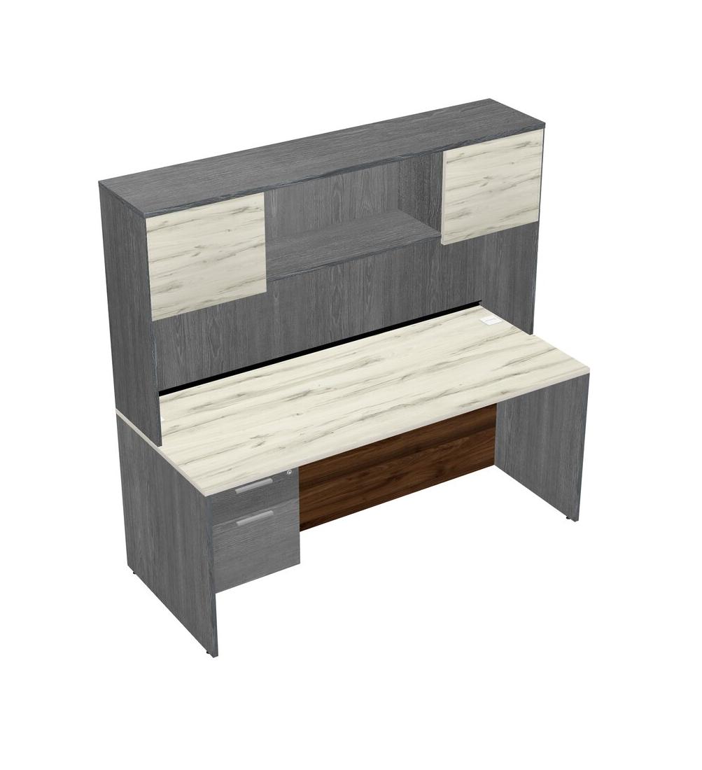 Heinne Holz Rectangular Office Desk Plus Grey Hanging Drawers And Grey Hutch