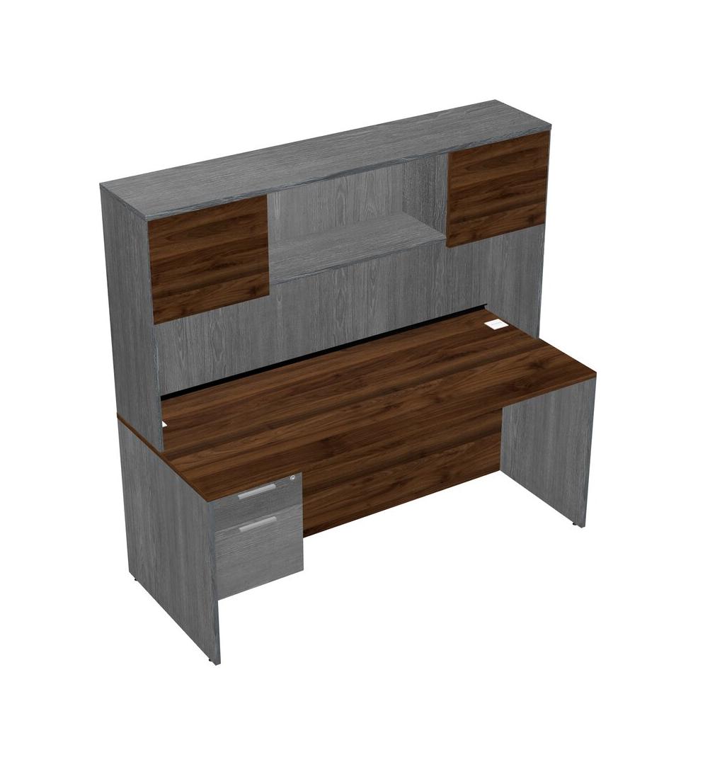 Columbia Walnut Rectangular Office Desk Plus Grey Hanging Drawers And Grey Hutch