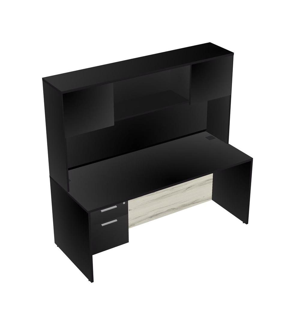 Black Rectangular Office Desk Plus Black Hanging Drawers And Black Hutch