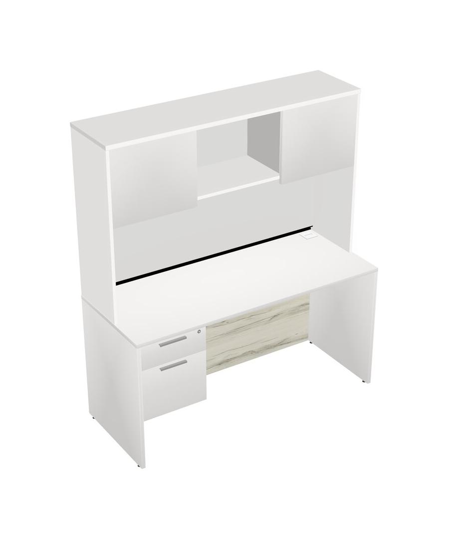 White Rectangular Office Desk Plus White Hanging Drawers And White Hutch