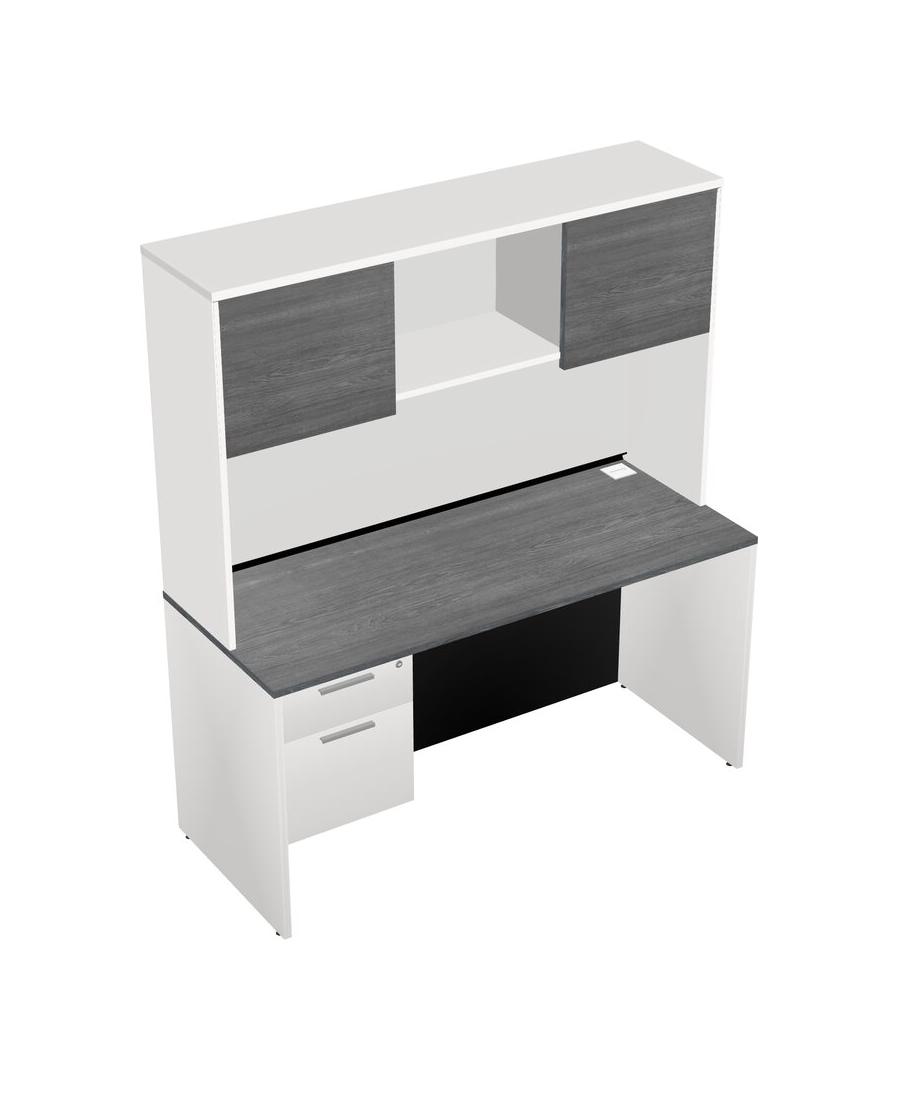 Grey Rectangular Office Desk Plus White Hanging Drawers And White Hutch
