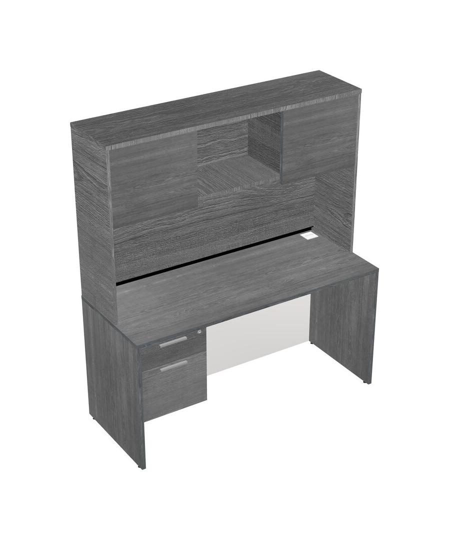 Grey Rectangular Office Desk Plus Grey Hanging Drawers And Grey Hutch