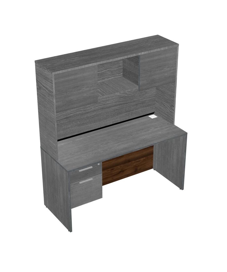 Grey Rectangular Office Desk Plus Grey Hanging Drawers And Grey Hutch