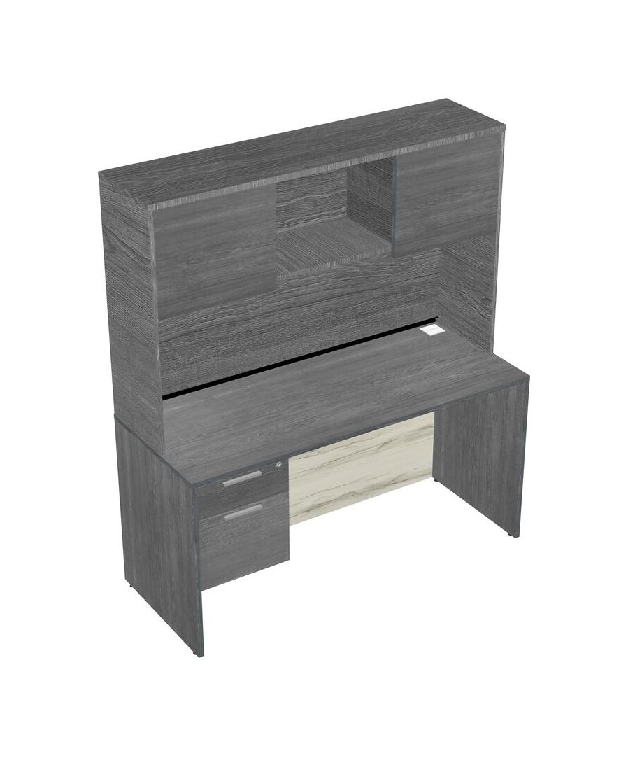 Grey Rectangular Office Desk Plus Grey Hanging Drawers And Grey Hutch