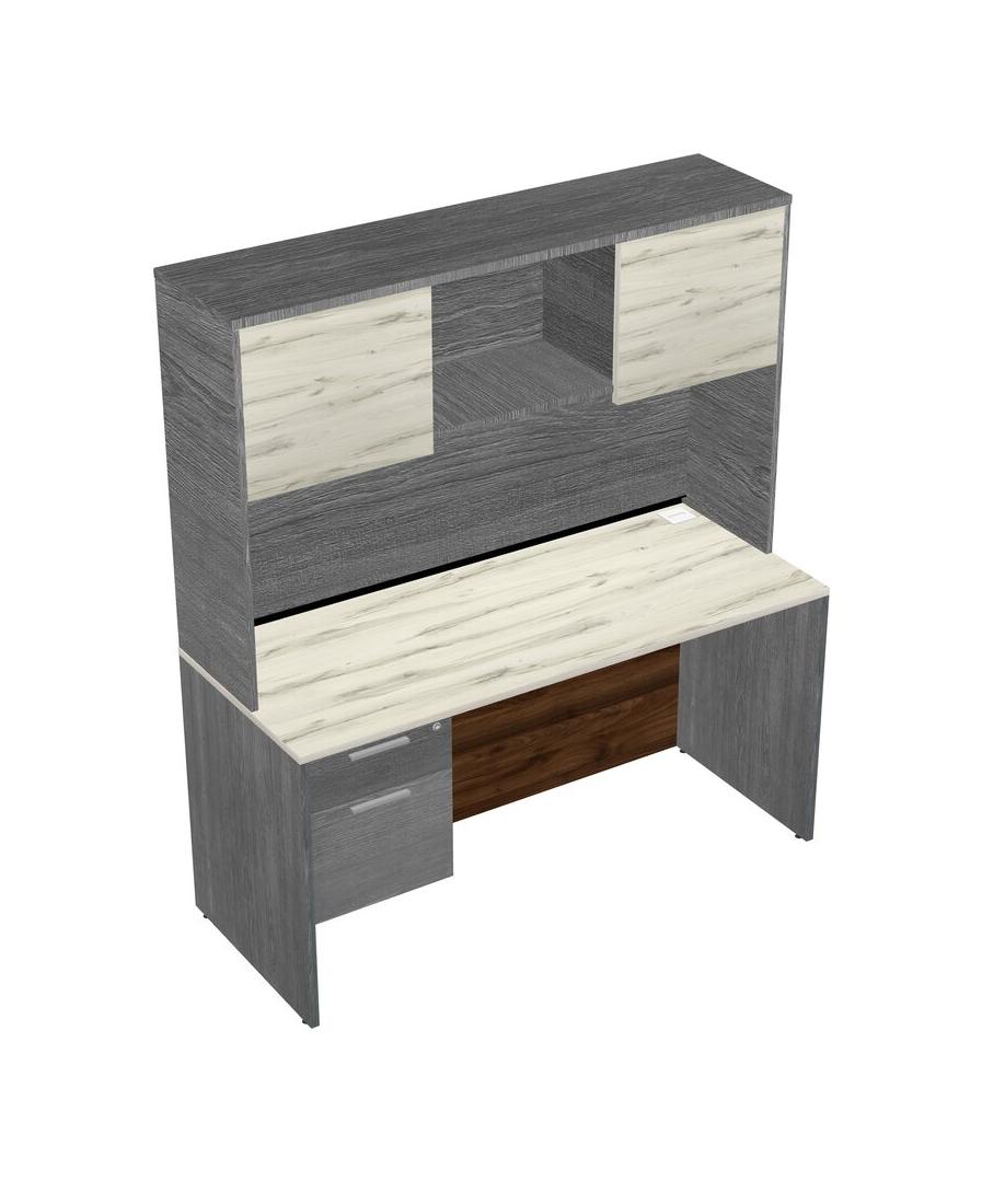 Heinne Holz Rectangular Office Desk Plus Grey Hanging Drawers And Grey Hutch