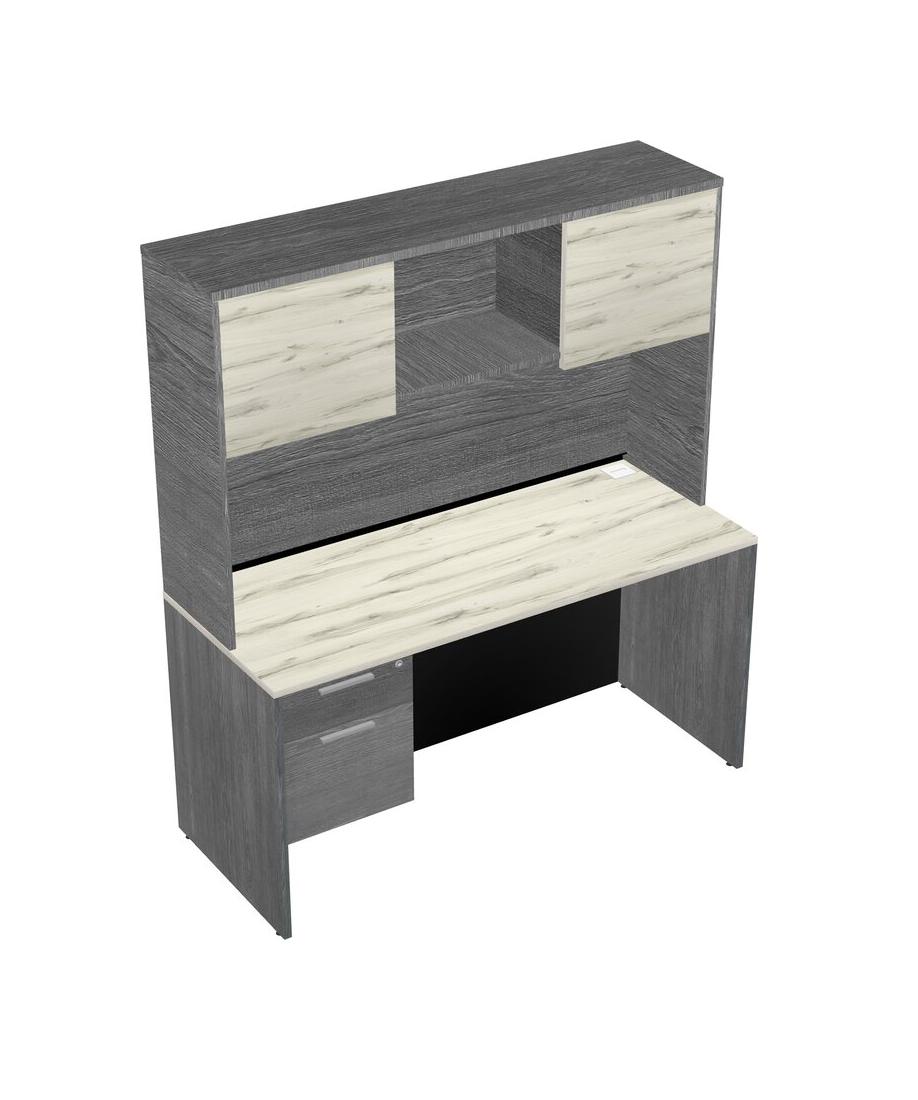 Heinne Holz Rectangular Office Desk Plus Grey Hanging Drawers And Grey Hutch