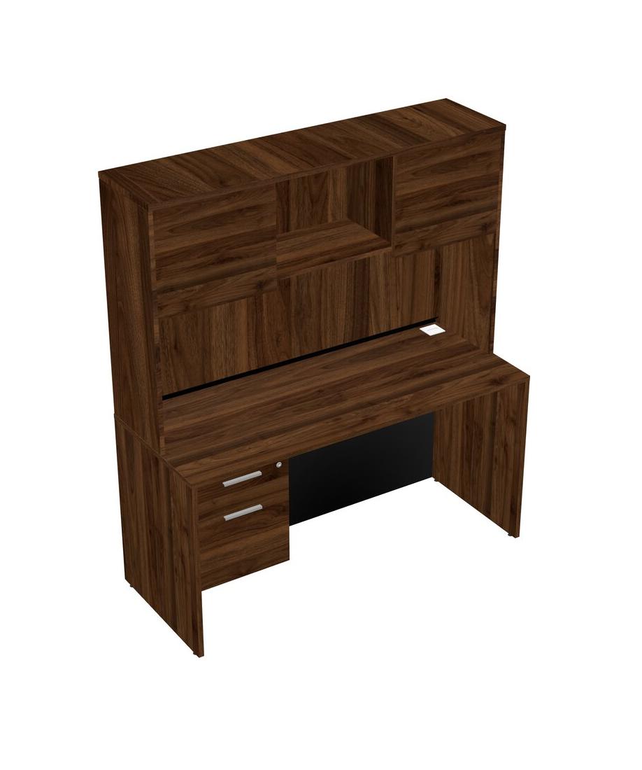 Columbia Walnut Rectangular Office Desk Plus Columbia Walnut Hanging Drawers And Columbia Walnut Hutch