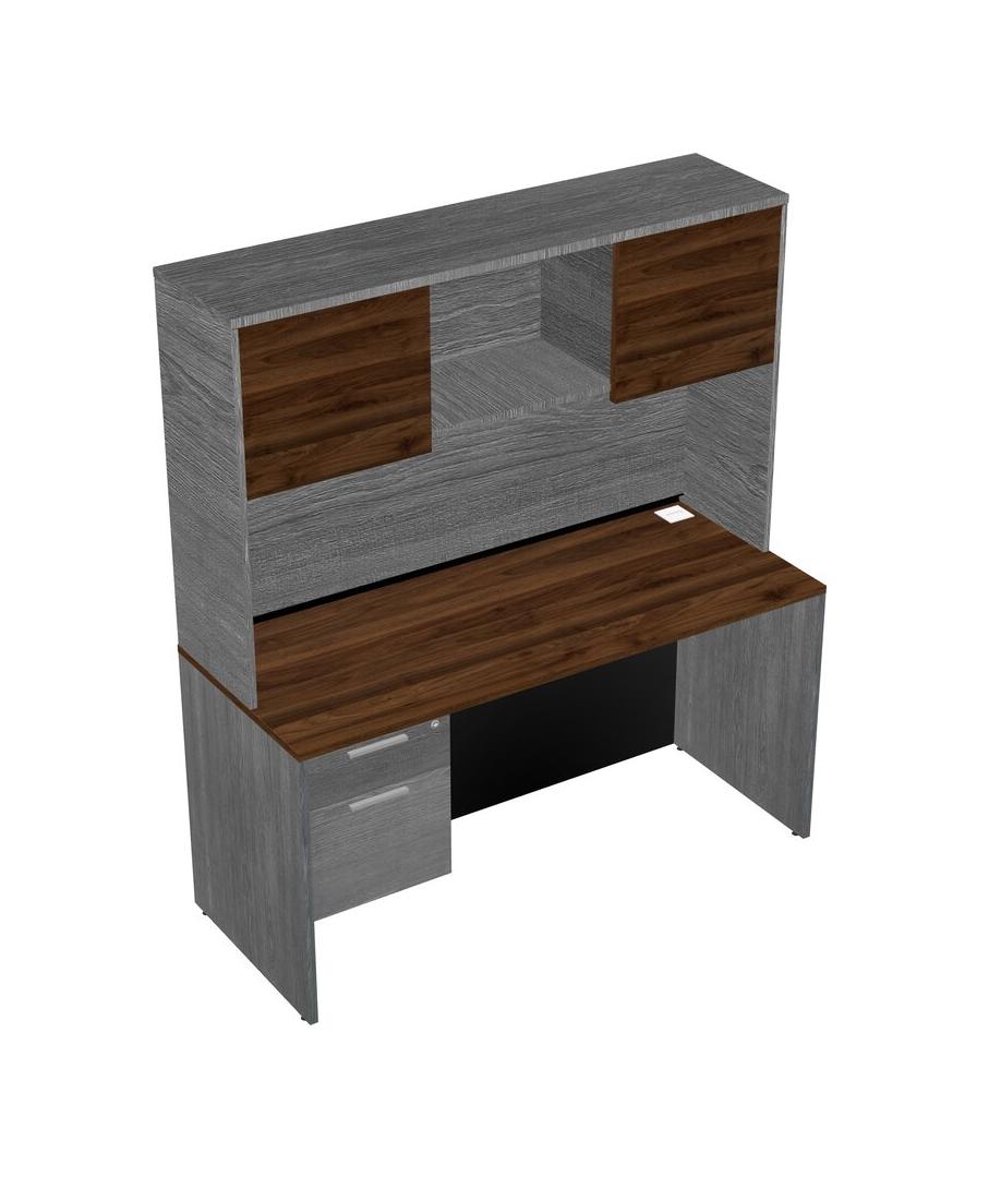Columbia Walnut Rectangular Office Desk Plus Grey Hanging Drawers And Grey Hutch