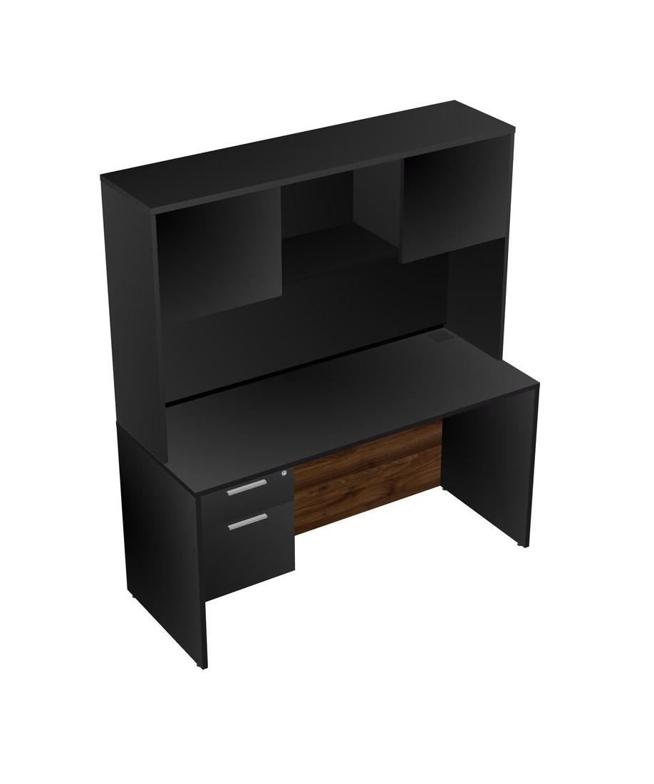 Black Rectangular Office Desk Plus Black Hanging Drawers And Black Hutch