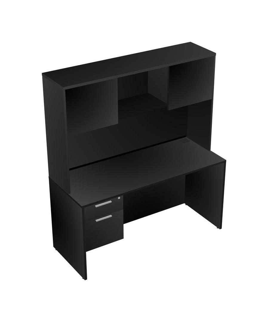Black Rectangular Office Desk Plus Black Hanging Drawers And Black Hutch