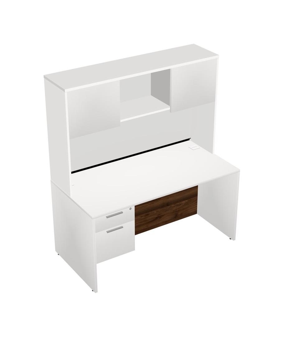 White Rectangular Office Desk Plus White Hanging Drawers And White Hutch