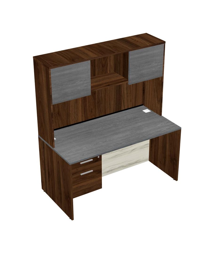 Grey Rectangular Office Desk Plus Columbia Walnut Hanging Drawers And Columbia Walnut Hutch