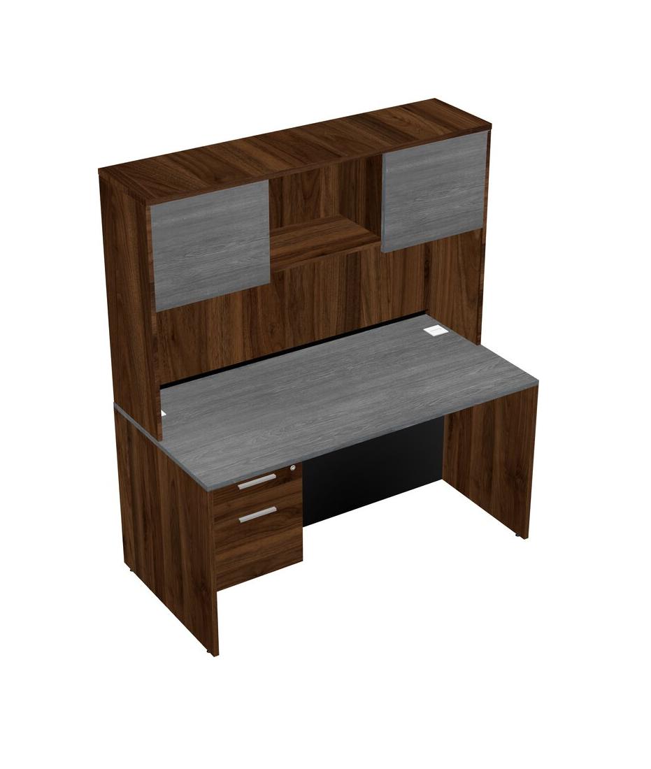Grey Rectangular Office Desk Plus Columbia Walnut Hanging Drawers And Columbia Walnut Hutch