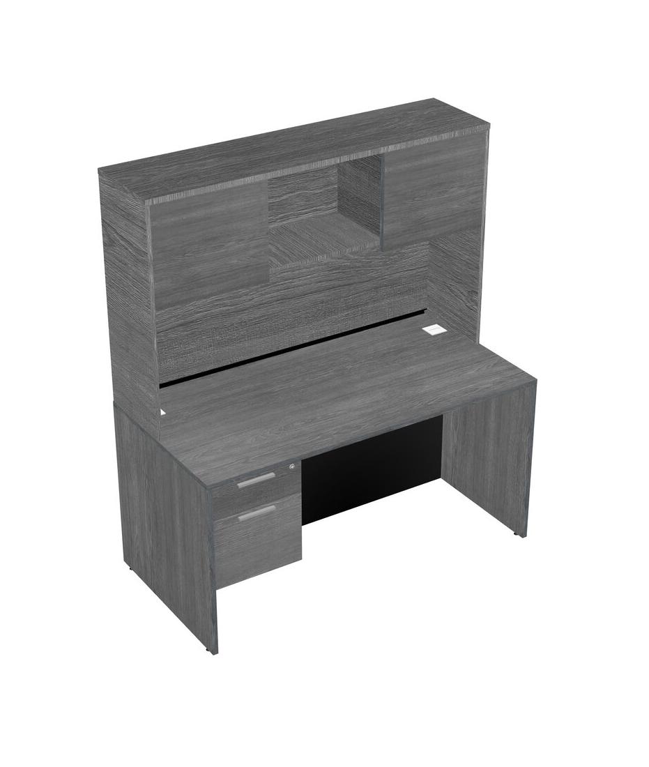 Grey Rectangular Office Desk Plus Grey Hanging Drawers And Grey Hutch